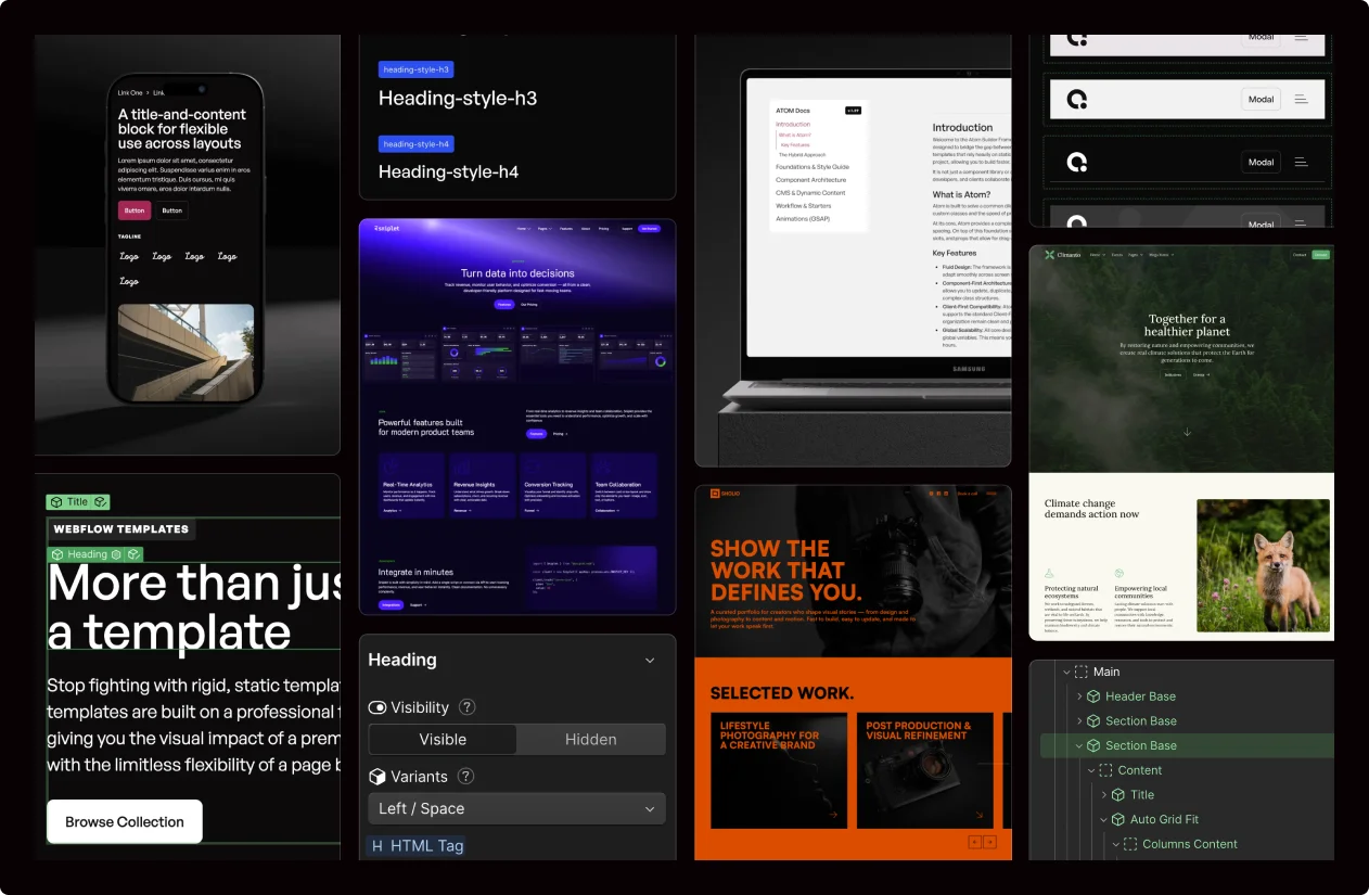 Som Webflow Partner hjälper vi företag att bygga webbplatser med stark design och en stabil teknisk grund. Med vårt eget Atom Builder Framework skapar vi lösningar i Webflow som är snabba och enkla att vidareutveckla. Med oss får du inte bara en ny hemsida, utan en trygg Webflow-byrå och partner som vet hur man bygger för både idag och nästa fas.